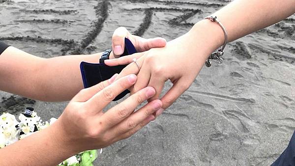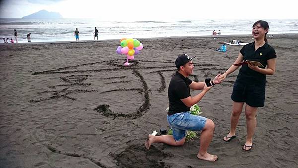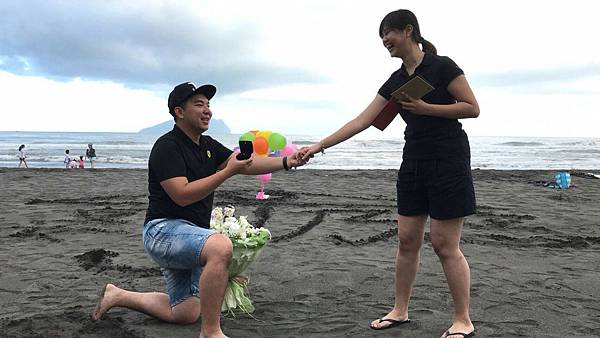男主角在經過多方考量之下,終於排出了鑽戒求婚的日期。到了鑽戒求婚當天,男主角搭車前往與女主角相約的宜蘭海邊,殊不知竟然碰上大塞車!心急如焚的男主角以為計畫已久的海邊鑽戒求婚會因為塞車、天黑而泡湯,還好,最後在落日之前,男主角順利的到達了相約碰面的宜蘭海邊!男主角拿著氣球與花束,在海灘上寫下兩人的名字,拿出準備已久的求婚鑽戒單膝下跪,誓言要照顧女主角一輩子!不過,生性幽默的男主角似乎把氣氛搞得太歡樂了,女主角雖然又驚又喜、眼眶泛淚,但聽男主角的事後陳述表示,女主角從頭笑到尾,和原先計畫來一場感人的海邊鑽戒求婚完全不一樣啊XD