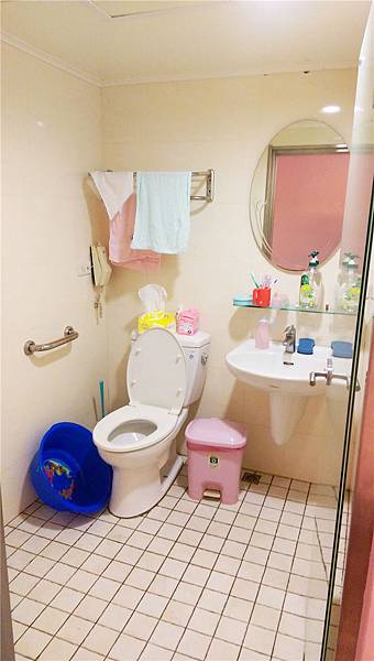 房間內的浴室因為房型的關係就不是網路上常看到的愛維納斯台中產後護理之家推薦分享的乾濕分離,不過這間浴室的用水都是煮沸過才會給媽媽使用的,也就是所謂的鍋爐水。