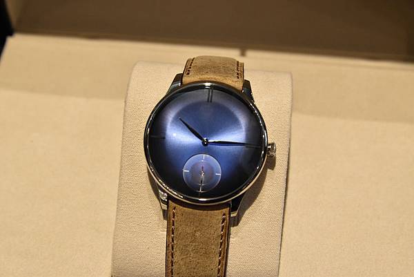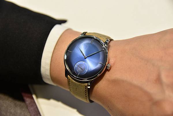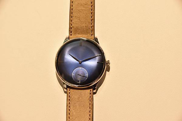 說起亨利慕時手錶,就不得不提到極具代表性的煙燻錶盤,Venturer Small Seconds Purity擁有迷人的藍色fume煙燻錶盤,由亨利慕時手錶中心向外暈染出美麗的漸層顏色,在弧形藍寶石水晶鏡面與白金錶殼的襯托之下,更顯高貴優雅質感,這款亨利慕時手錶上也飾有旭日紋圖案,讓fume煙燻錶盤的耀眼光彩更加出色。