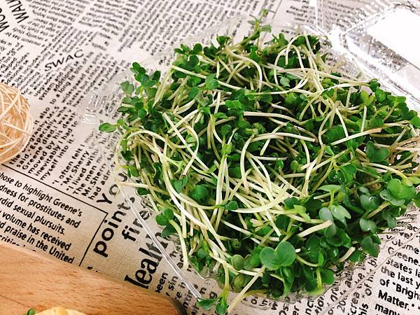 3.夾少量的永豐有機蘿蔔嬰苗放在一片吐司上