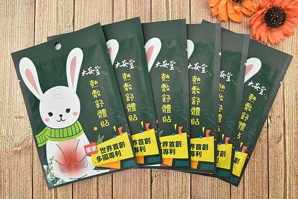 大安堂熱敷舒體貼每片皆為獨立包裝,就攜帶性來說極為方便。綠色包裝上頭有印著一隻可愛的兔子,看著都療癒起來。