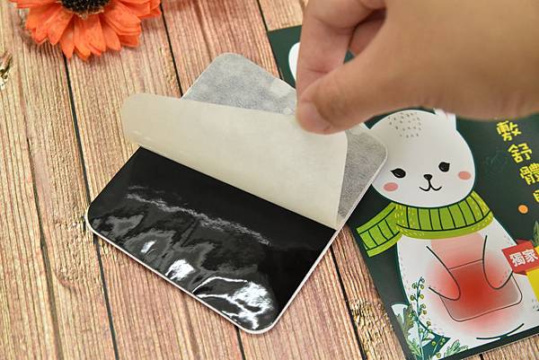 這黑黑看起來Q彈Q彈的就是熱敷舒體貼的凝膠式貼布,也是將薑汁精油牢牢鎖住的地方。將加有生薑萃取精油的凝膠式背貼與暖包結合,使熱敷的同時也達到精油舒緩的效果,減緩不適感。且經中醫師說明生薑精油對於人體有促進循環、驅寒暖身、舒筋活絡等效果!但使用者也須注意熱敷舒體貼並不是仙丹靈藥,若真有不適也應盡速就醫。