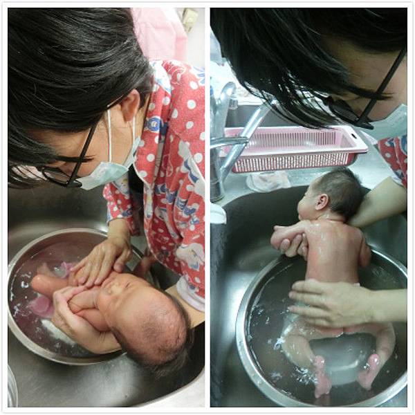 首先是在脫掉衣服前,先用紗布巾幫寶寶洗臉,在洗澡的過程中,護理人員會一直很貼心的叮嚀我各個注意事項。洗的過程中,要注意不能讓寶寶的耳道進水,也一定不能忘記要支撐好寶寶的頸部喔!洗頭也要注意不能按壓,只能輕輕的按摩。其實寶寶當時很不捧場,在洗臉的時候哭得好大聲,可能我緊張的心情她也感受到了吧,但護理人員都會一直誇我很棒,願意親自幫寶寶洗澡,還好有護理人員的鼓勵,不然我應該也會跟著哭吧。